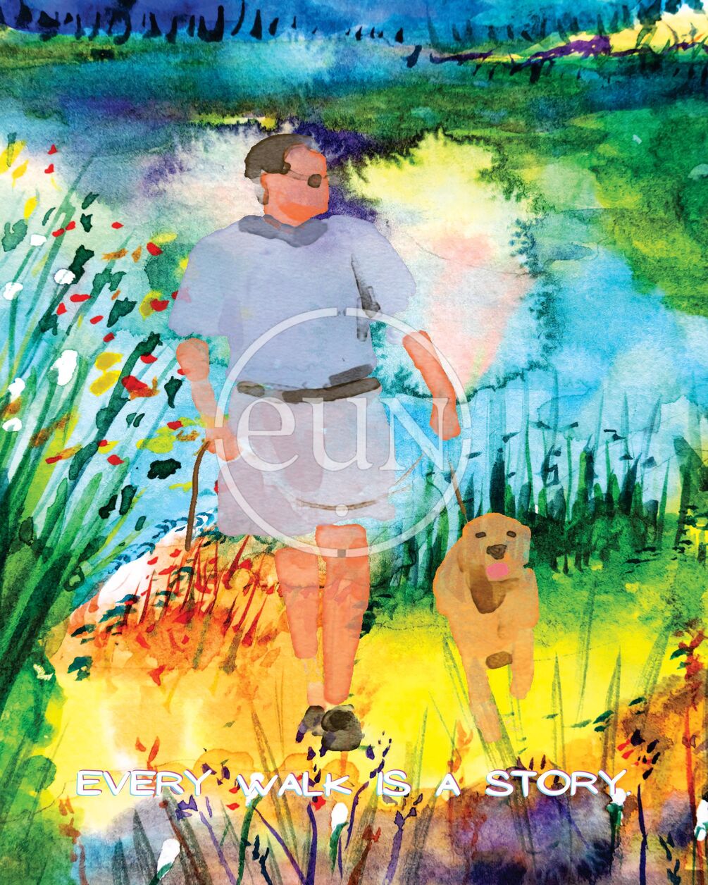 Every Walk Is a Story – Dog Walking Watercolor Printable Wall Art