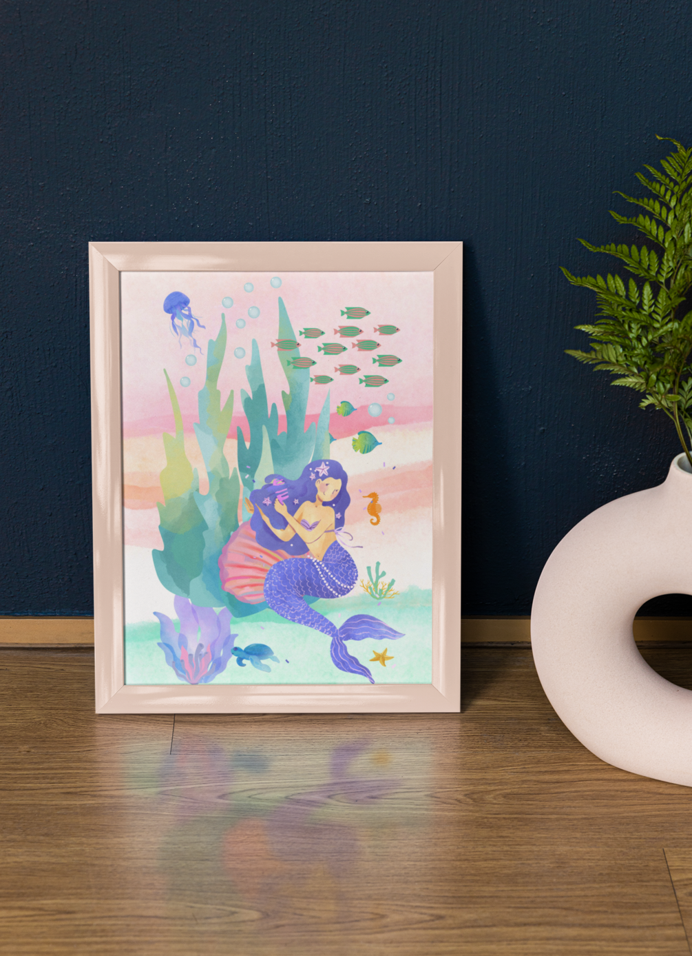 Mermaid Under the Sea Printable – Pastel Ocean Wall Art (Digital)