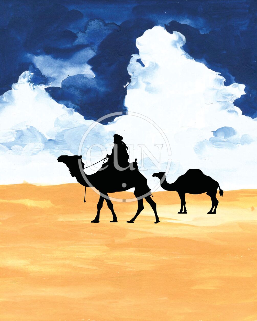 Camel Caravan in the Desert – Minimalist Silhouette Printable Wall Art