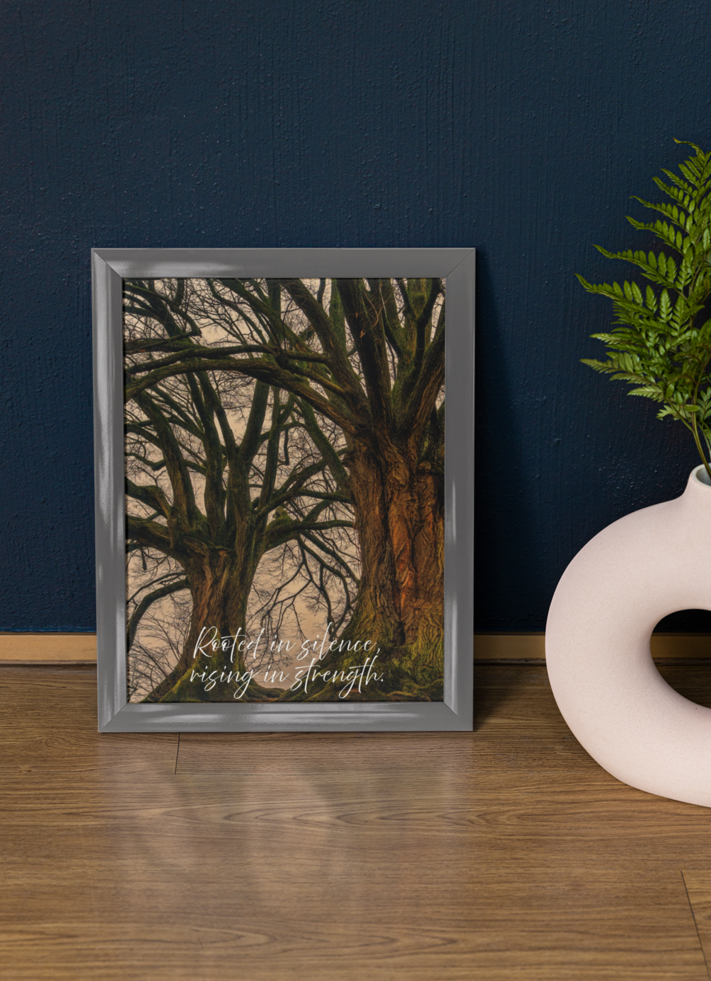 Rooted in Silence, Rising in Strength – Inspirational Tree Printable Wall Art